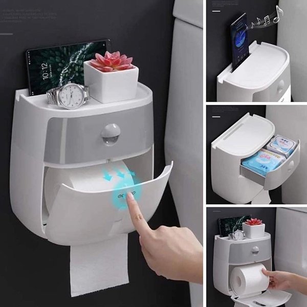 Thiết kế 2 ngăn, có thể dùng cho mọi loại giấy vệ sinh như loại vuông, loại chữ nhật hay cuộn tròn đều phù hợp. Dán tường chắc chắn, không cần khoan tường.